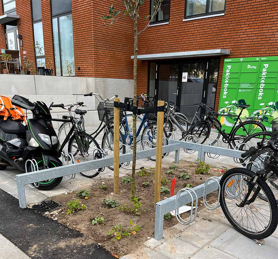 In addition, bicycle rails for cargo bikes have been installed, reflecting the increasing use of these among residents in urban housing areas. All components are designed with a focus on simplicity, durability and high usability.