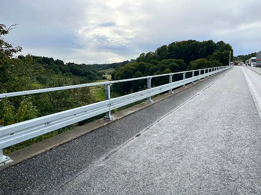 Coordination, Precision, and Efficiency on the E45 Motorway. Bridge guardrails and foundations were replaced on both sides of the motorway.