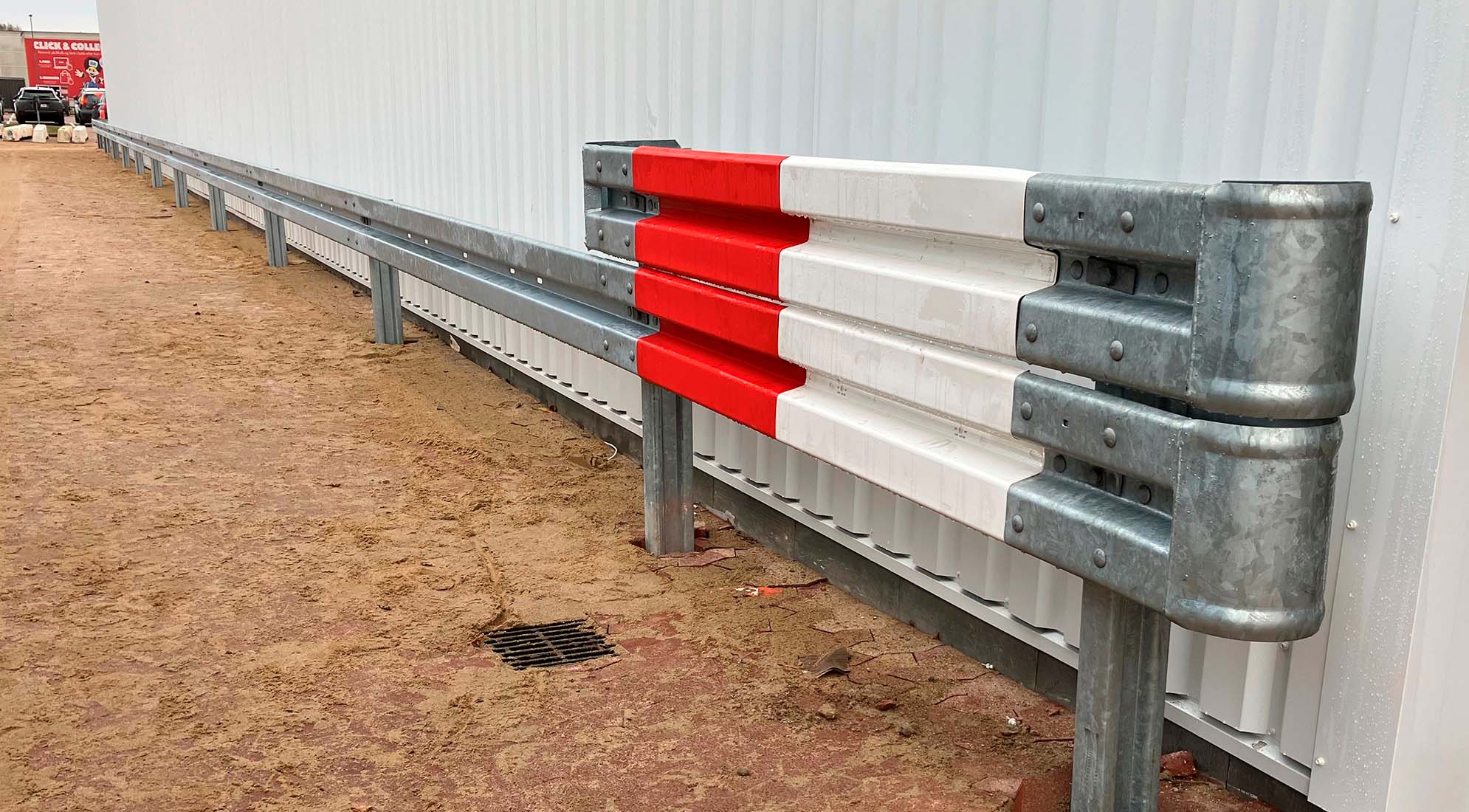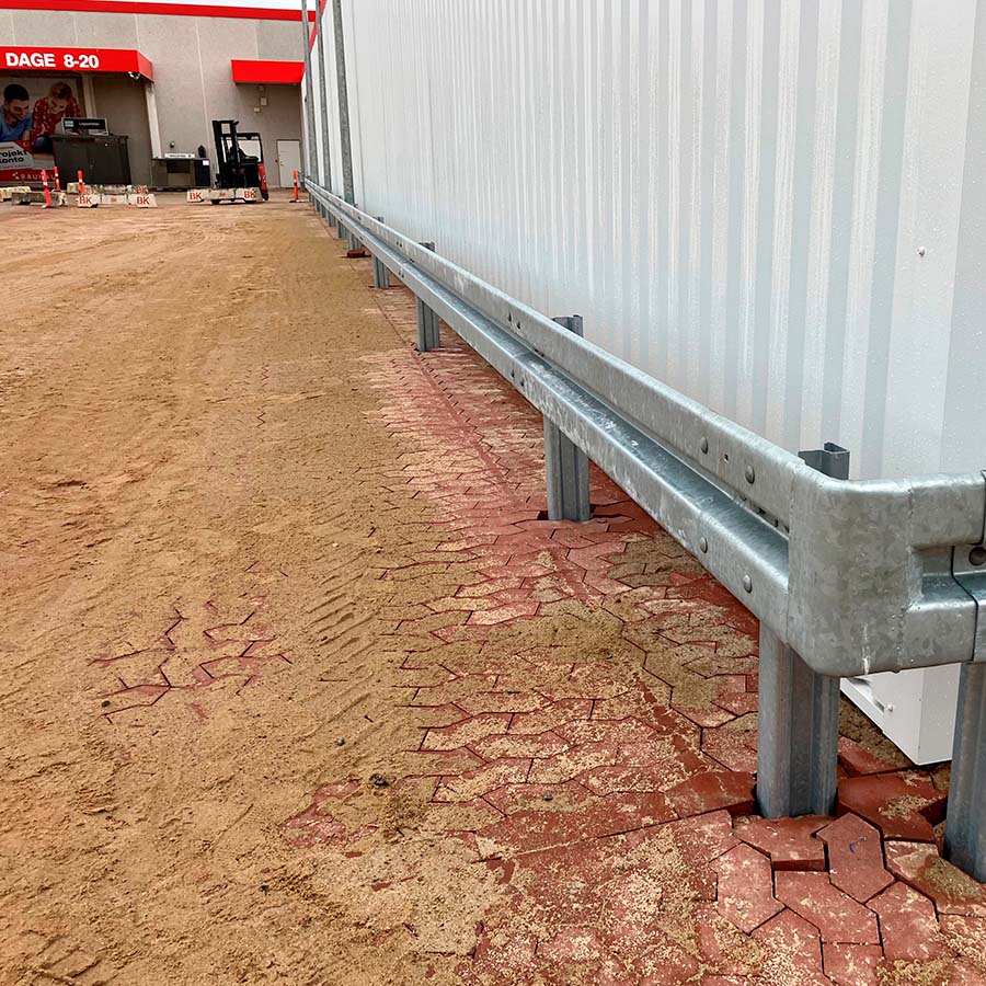 For this project, we selected our H1 W3 system – a proven solution normally used on roads and motorways. The system provides documented strength and controlled deformation, making it particularly suitable as building protection around gates and façades where trucks operate close to the structure on a daily basis.