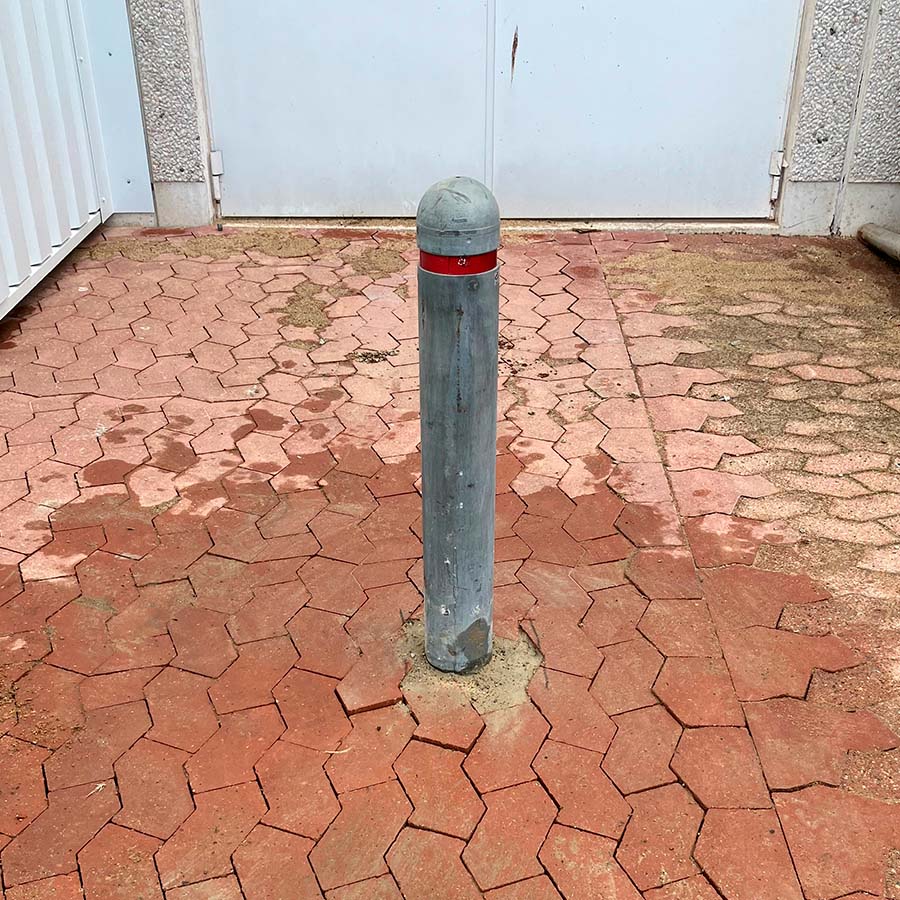 The poles were driven through the existing paving. Bauhaus subsequently restored the paving stones, leaving the area neat and fully functional again. This approach is an efficient way of installing building protection without major intervention in the existing surface – a significant advantage in busy logistics environments.