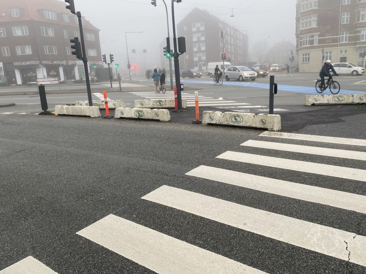 In the heavily trafficked intersection of Borups Alle/Frederikssundsvej, a pedestrian crossing guides foot traffic across the 6-lane road. To ensure the safety of pedestrians, there are traffic modules on the road, which until now have been a stationary solution built on the road. This solution is time-consuming to remove and can take up to a week to re-establish, causing significant disruption to traffic. As a result, the intersection has had a temporary solution for an extended period while a better and safer solution was sought. That solution has now been found.