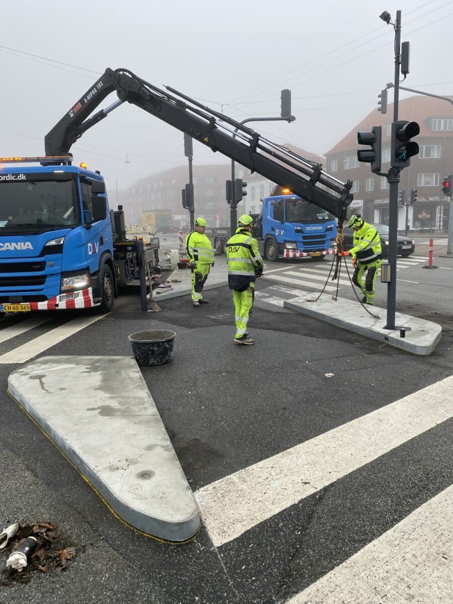 DAV NORDIC has now developed a special solution for the intersection. The solution consists of modular traffic units that can be quickly assembled and bolted to the ground. This means they can be removed quickly and reinstalled in less than a day after the race. The traffic light mast, which is part of the traffic module, can be mounted separately with or without the traffic module, making the solution highly flexible. Three modules have been delivered, consisting of seven units, and this is the first special solution within DAV NORDIC’s extensive range of mobile traffic modules that has been manufactured.