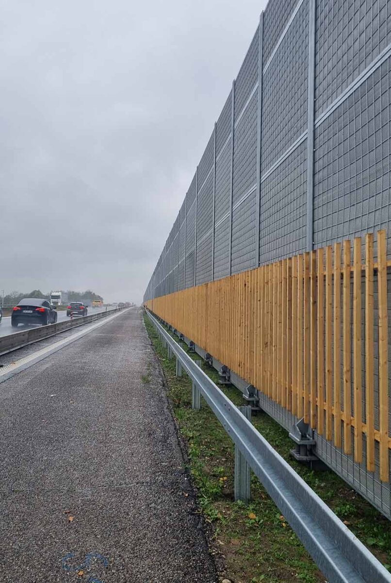 The noise barrier is founded on steel pile foundations, and the barrier elements are of the Green Wall type – a type of noise barrier we frequently supply to our customers. To ensure low maintenance and a beautiful appearance, the barrier is clad with wooden slats, which also help to prevent graffiti.