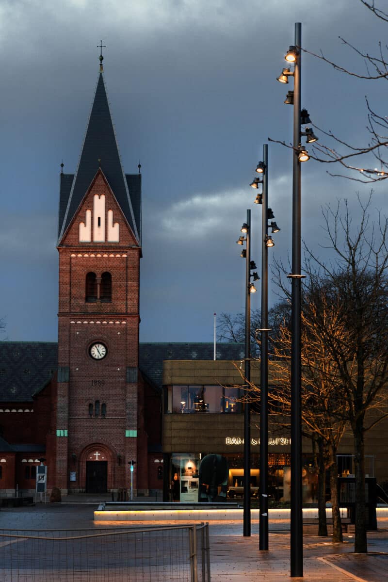 DAV NORDIC has supplied lighting poles for Store Torv and two entrance plazas in the town center.