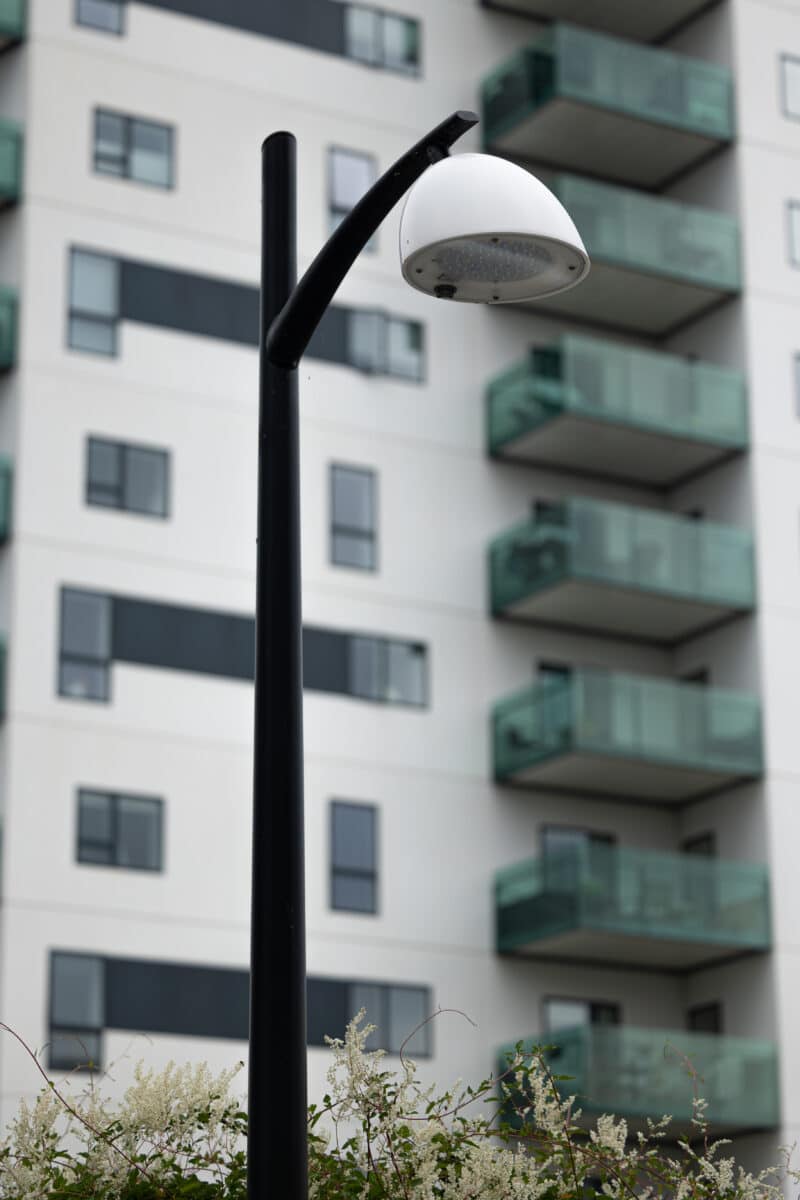 The pole itself is the same as the rest of the distinctive CitySwan series, a round-conical pole with a sloping top, but what makes it special is the combination of the pole and the arm. The arm was originally designed as a wall-mounted arm, but for this solution we have chosen to merge the pole and arm. The arm is a specially designed arm with the same curvature as the classic CitySwan arm, but where the tube turns one turn from pole to luminaire.